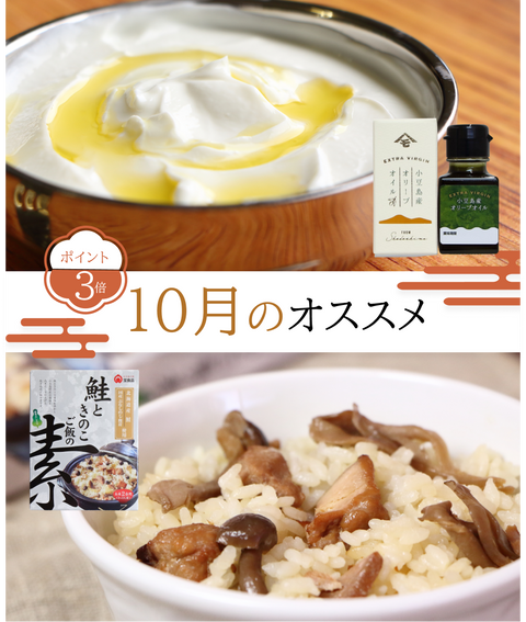 例えば、フレッシュな風味が楽しめる エキストラバージンオリーブオイル、手軽に秋の味覚を味わえる オリーブご飯の素 など盛りだくさん🍴